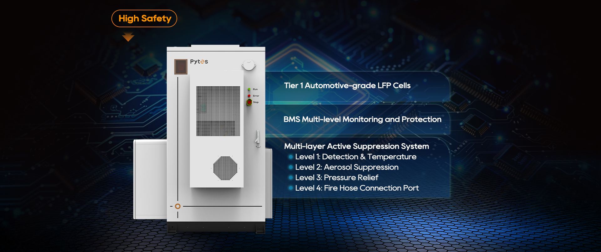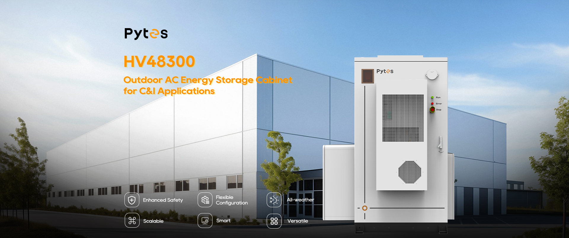 The Pytes HV48300 is a high-voltage commercial and industrial energy storage solution. Equipped with Tier 1 LFP cells and multi-level BMS protection, it offers all-weather adaptability (IP55), smart remote monitoring, flexible configurations, and scalable energy up to 215kWh per cabinet. Multiple cabinets can be stacked in parallel to provide a safe, reliable, and efficient storage solution for businesses.